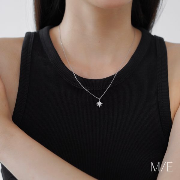 Navira eight pointed star necklace, a dainty yet powerful piece crafted in 925 sterling silver. The eight point star has long been a symbol of hope, guidance, and fresh starts. Designed in a minimalist silhouette, it’s perfect for layering with your everyday chains or shining on its own.